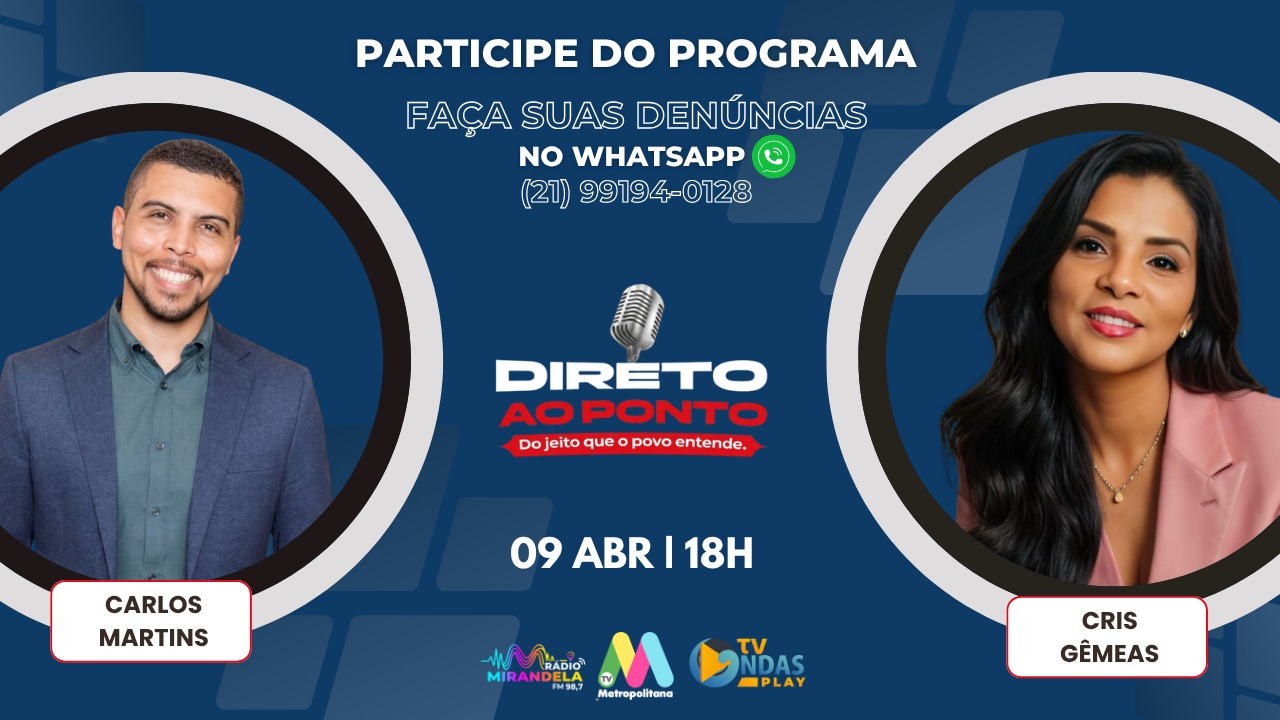DIRETO AO PONTO do jeito que o povo entende – 09/04/26 #diretoaoponto #informação . Apresentação: Carlos Martins e Cris Gêmeas
