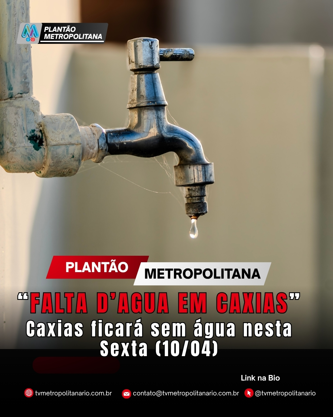 Moradores de Duque de Caxias devem se preparar para a interrupção no abastecimento de água nesta sexta-feira (10). A medida afetará regiões dos bairros Campos Elíseos, Jardim Primavera, Saracuruna e Cangulo.