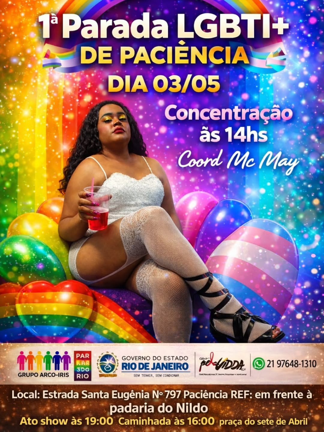 A Zona Oeste do Rio de Janeiro receberá, no próximo dia 3 de maio de 2026 (domingo), a primeira edição da Parada LGBT do bairro de Paciência. O evento amplia a agenda de mobilizações da diversidade na região e se soma a outras iniciativas já realizadas em bairros como Santa Margarida e Cosmos.