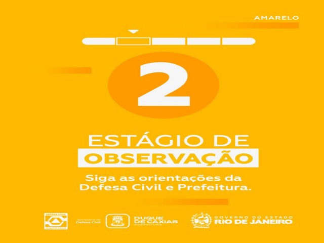O município de Duque de Caxias entrou em estágio de observação devido à previsão de chuva moderada a forte nas próximas horas.